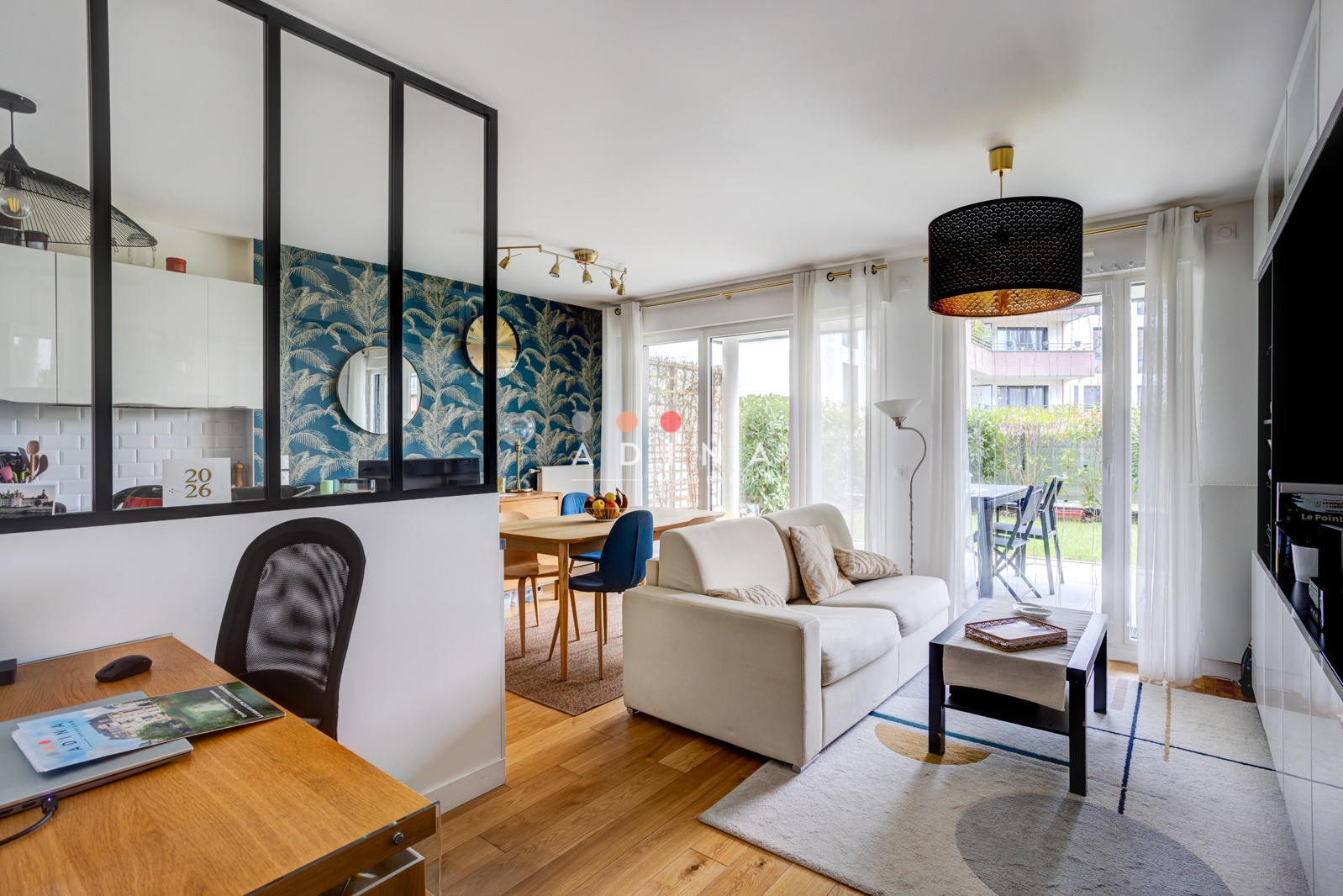 Dès l’entrée, vous serez séduit par la luminosité de la pièce de vie, idéalement exposée plein Sud. L’espace se compose d’un séjour convivial ouvert sur une cuisine américaine entièrement équipée, conçu pour favoriser les échanges et la convivialité. Ce volume s’ouvre généreusement sur l’extérieur. C’est ici l’atout de cet appartement : une vaste terrasse de près de 25 m2 prolongée par un jardin privatif de plus de 32 m2. Cet écrin de verdure, rare en ville, devient une véritable pièce supplémentaire aux beaux jours, parfaite pour recevoir ou se ressourcer en toute intimité.